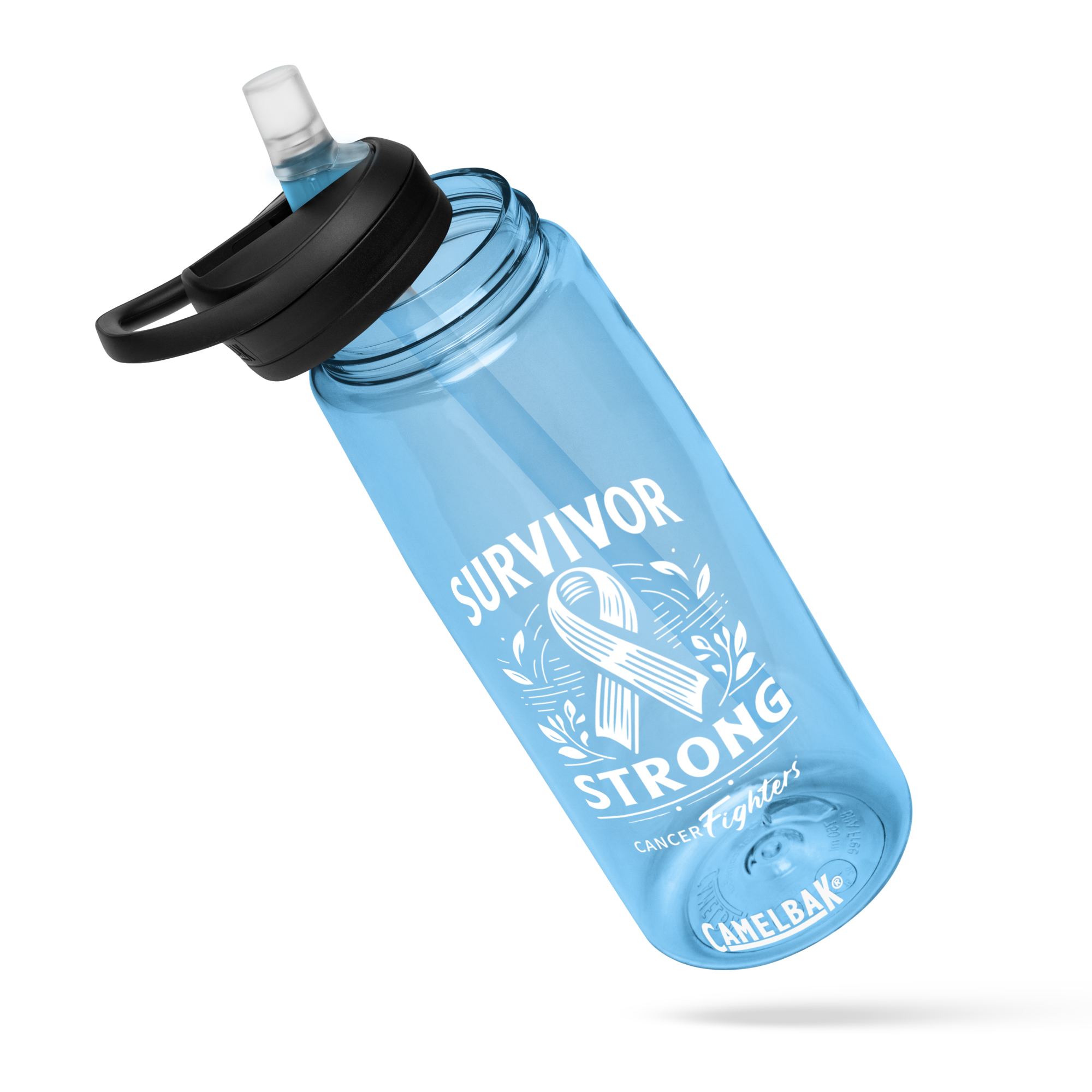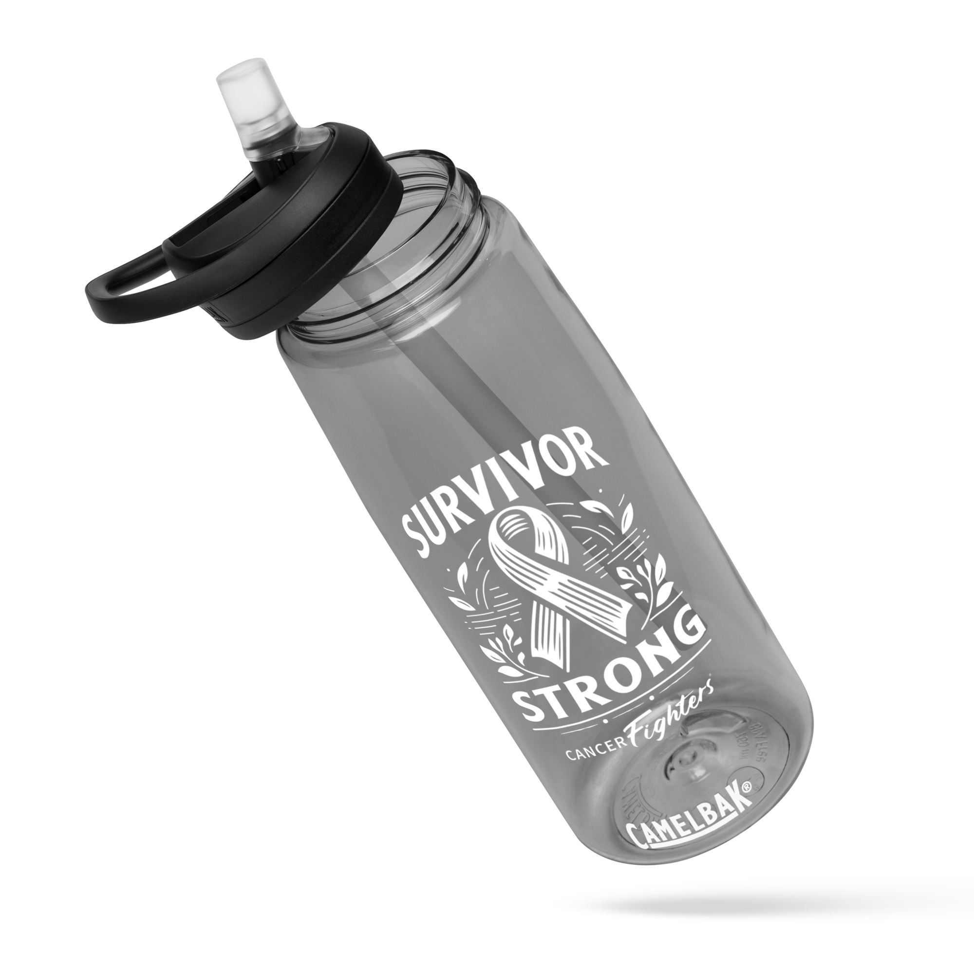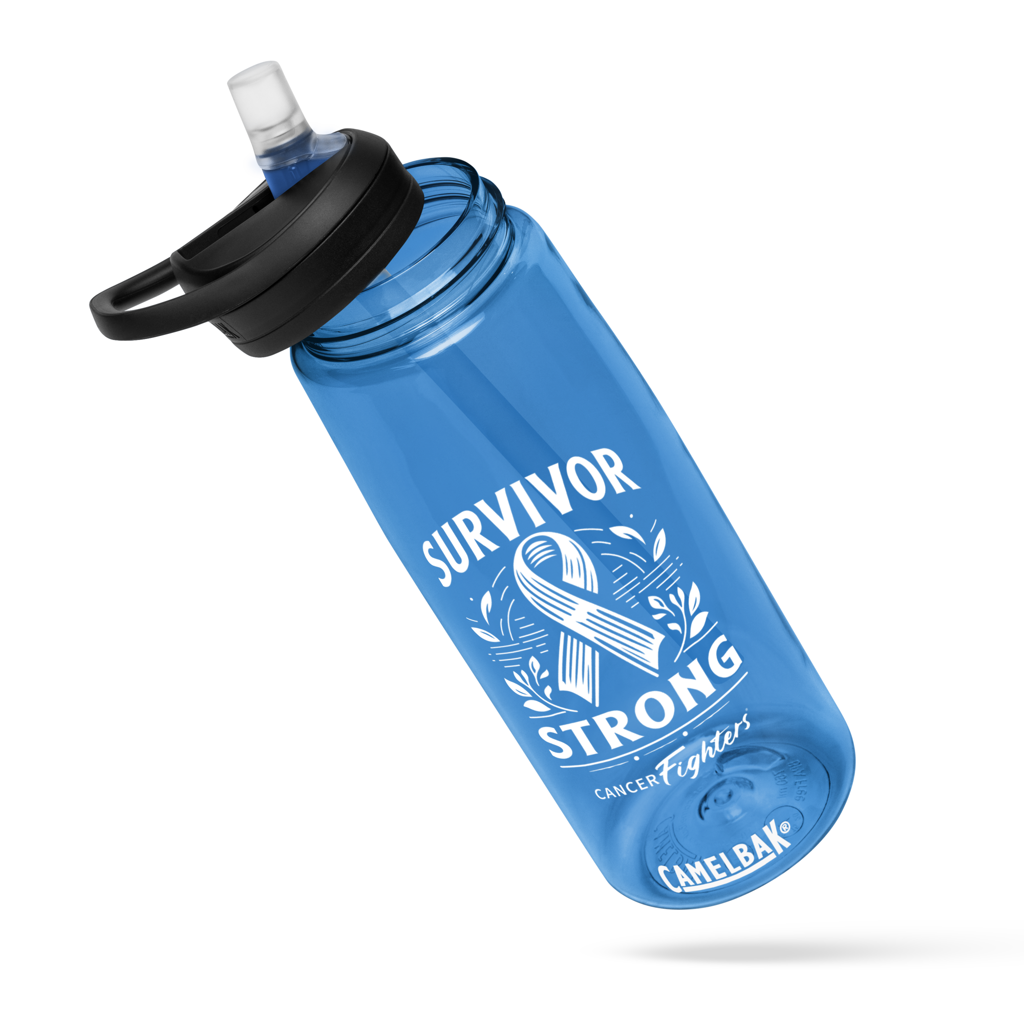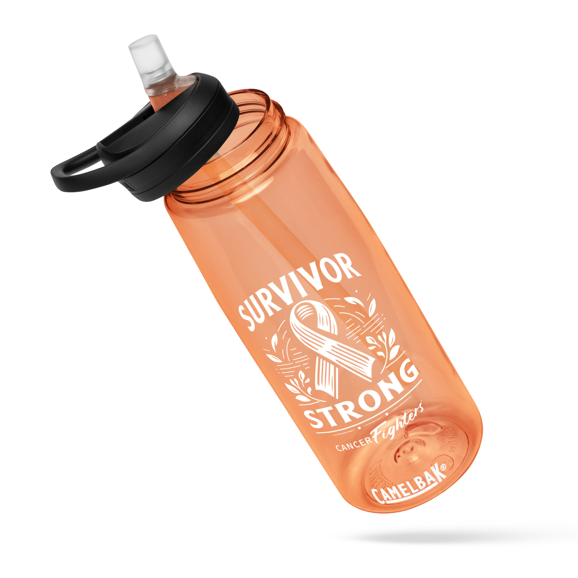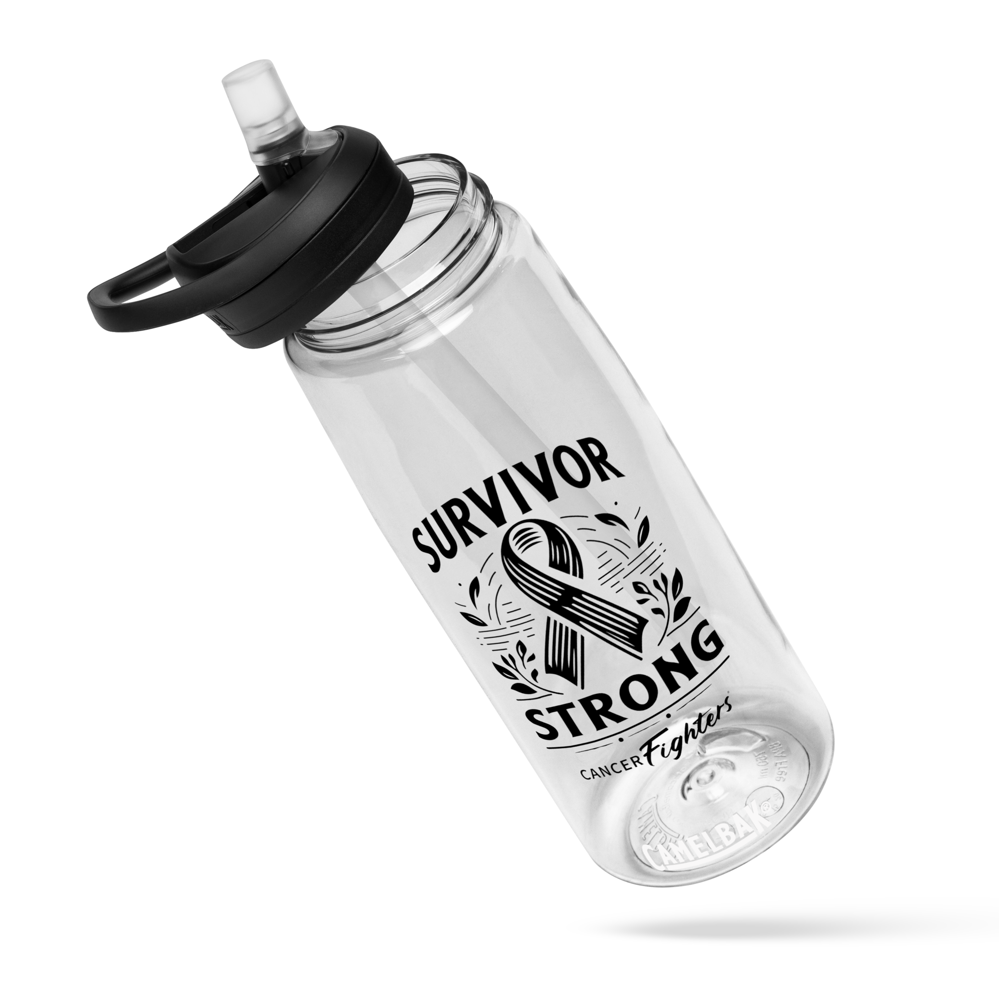 Stay refreshed and resilient with the Cancer Fighters "Survivor Strong" sports bottle, crafted to support your active lifestyle while honoring your journey. Made from 50% recycled plastic, this 25 oz bottle is designed for durability, resisting stains, shattering, and odors to keep your drink fresh and safe. The spill-proof screw-on lid and convenient bite valve ensure a leak-free experience, while the single-finger carry-handle makes it easy to take on the go. Measuring 10″ × 3″ and constructed from BPA-free Eastman Tritan™ Renew, this stylish and practical bottle is perfect for staying hydrated.