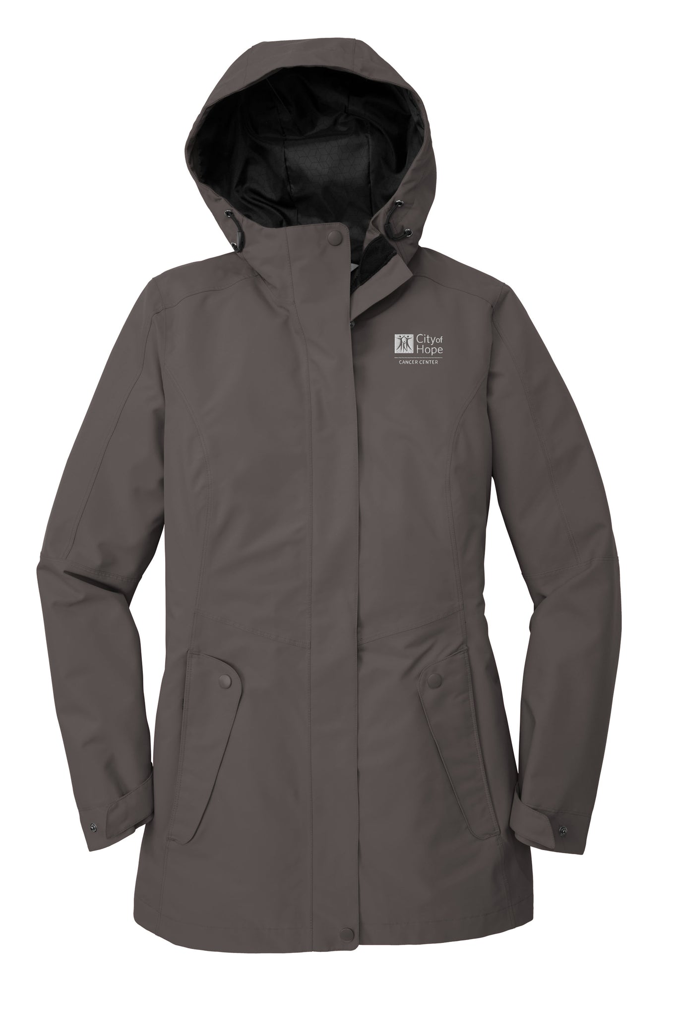 Stay protected from the elements in style with the City of Hope Women's Collective Outer Shell Jacket. This sleek, high-performance shell is designed for ultimate weather resistance, featuring a fully seam-sealed, waterproof, and breathable construction with a durable water-repellent (DWR) finish. The slightly longer length, adjustable hood, and full-length storm flaps provide added coverage, while the reverse coil zippers and adjustable snap cuffs enhance functionality.