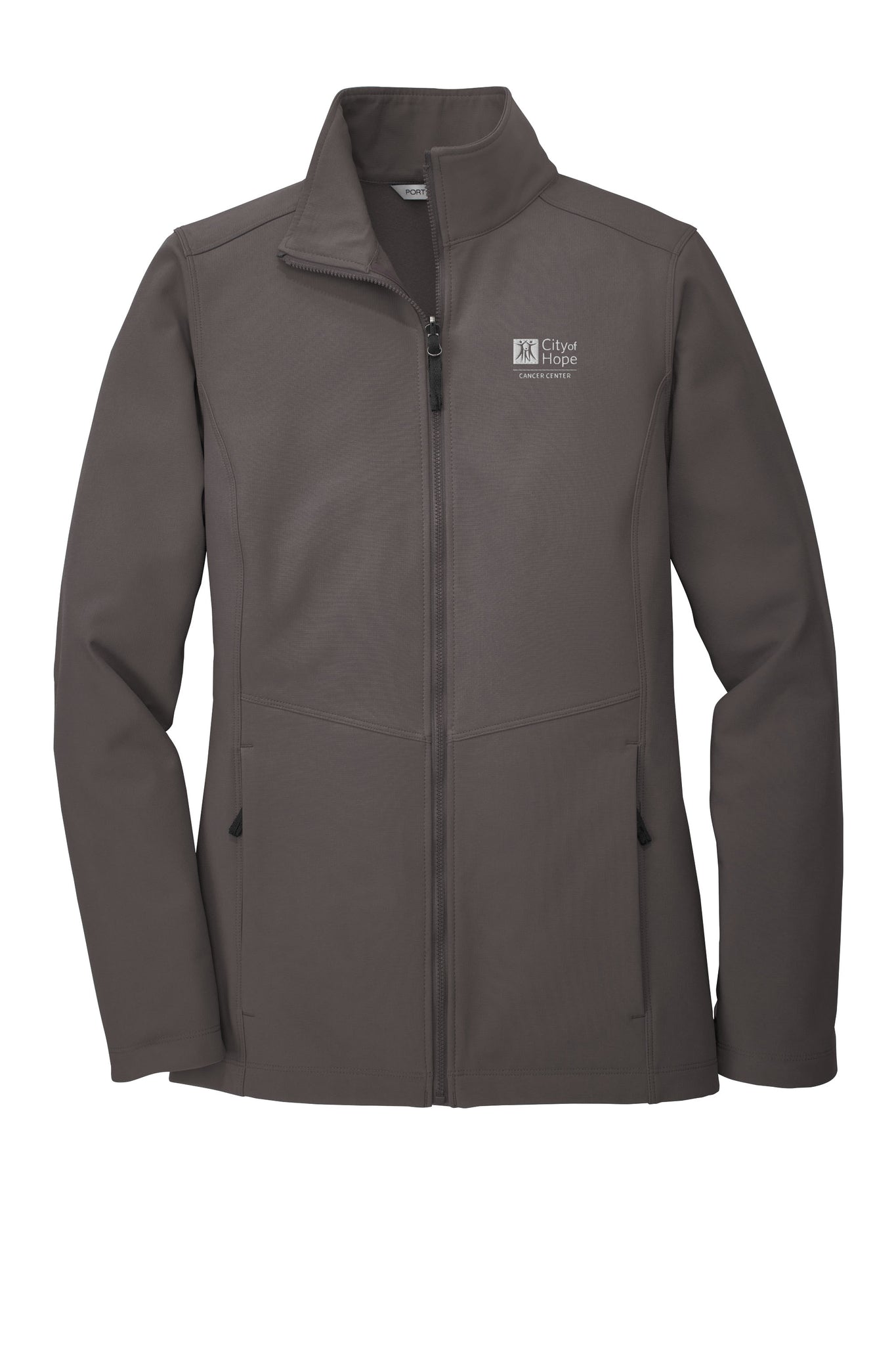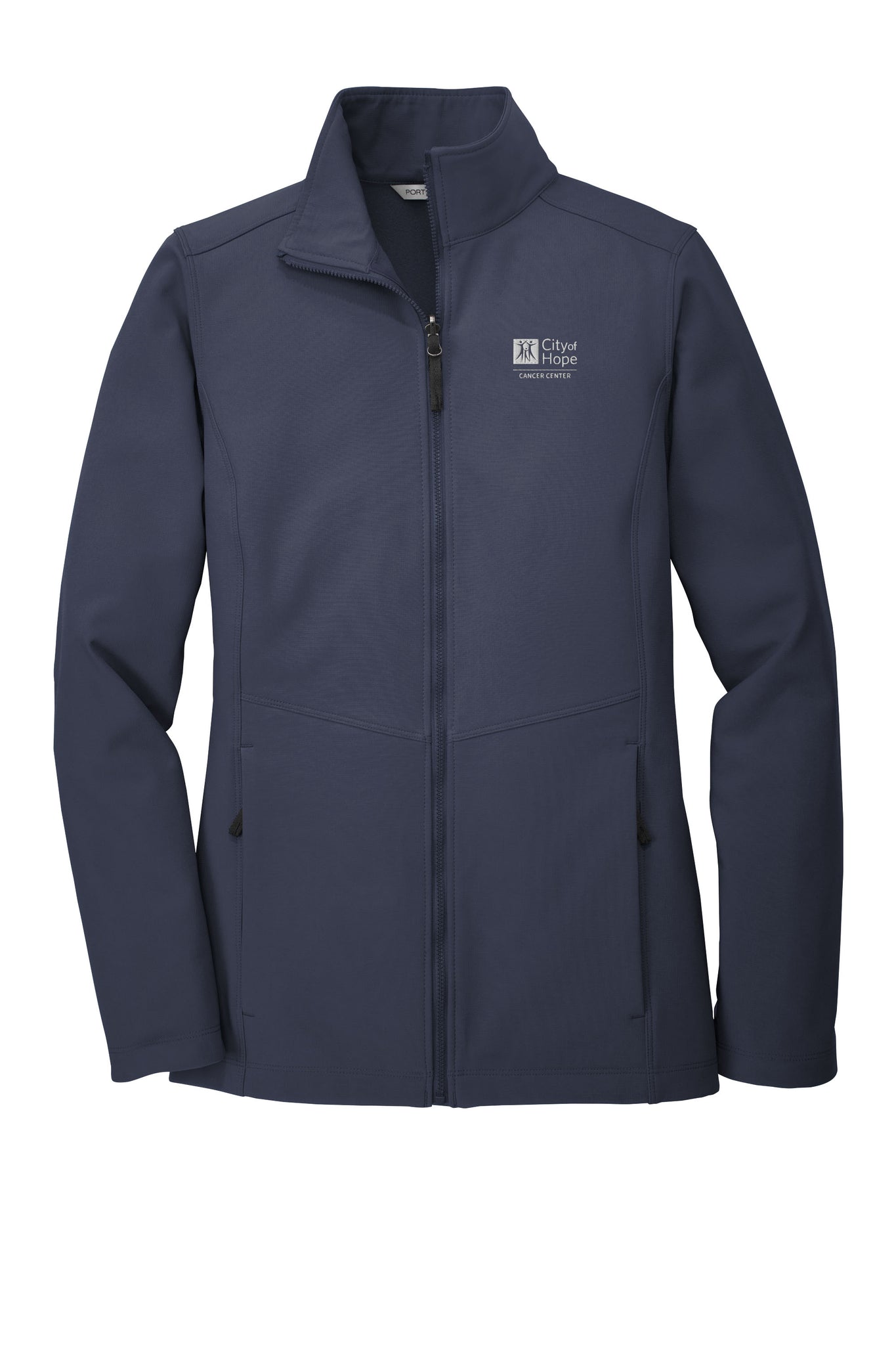With a slightly longer length for extra coverage, this jacket is built for versatility and can be zipped into an outer Collective layer for added insulation. Thoughtful details like a molded center front zipper and reverse-coil zippered pockets provide a clean, polished finish. Whether worn alone or layered, this soft shell delivers comfort, durability, and City of Hope pride wherever you go.