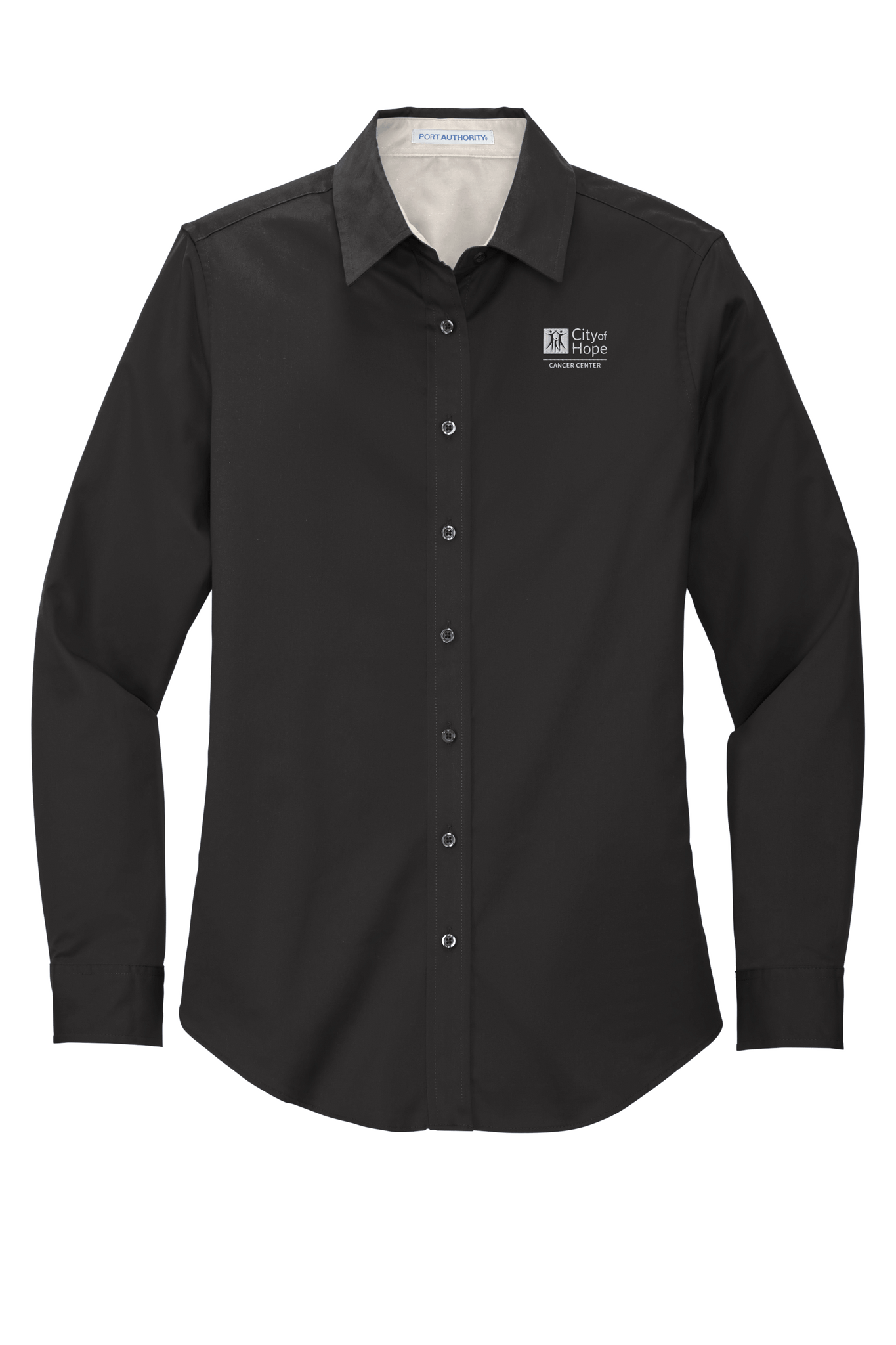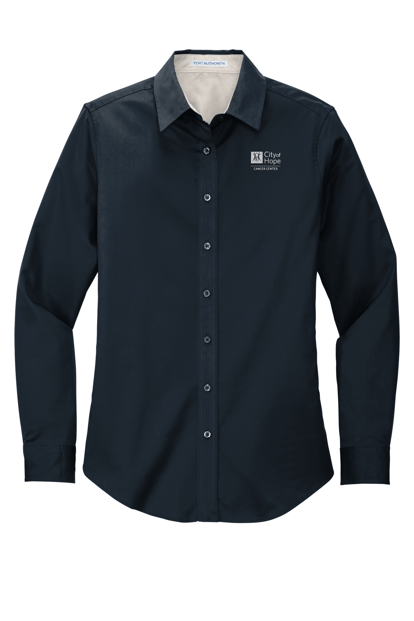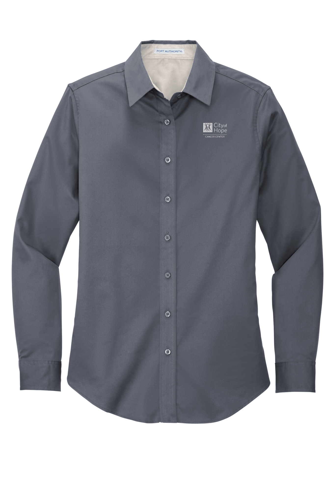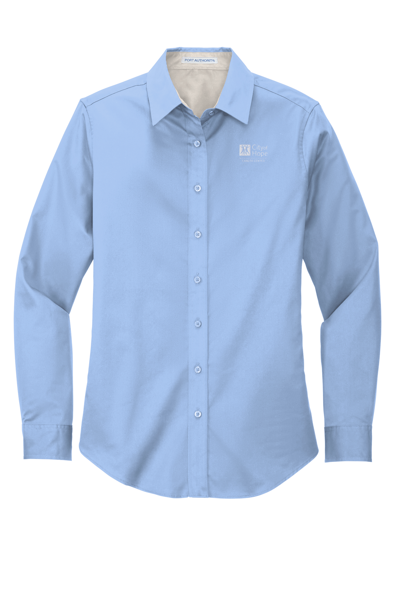 Experience the perfect blend of comfort and professionalism with the City of Hope Women's Long Sleeve Easy Care Shirt. Crafted from a lightweight 4.5-ounce fabric that combines 55% cotton and 45% polyester, this shirt promises both softness and durability. Its wrinkle-resistant quality ensures you maintain a polished look throughout the workday, making it an indispensable addition to your wardrobe. The shirt features a traditional, relaxed look with an open collar and adjustable cuffs, tailored to offer a comfortable fit.