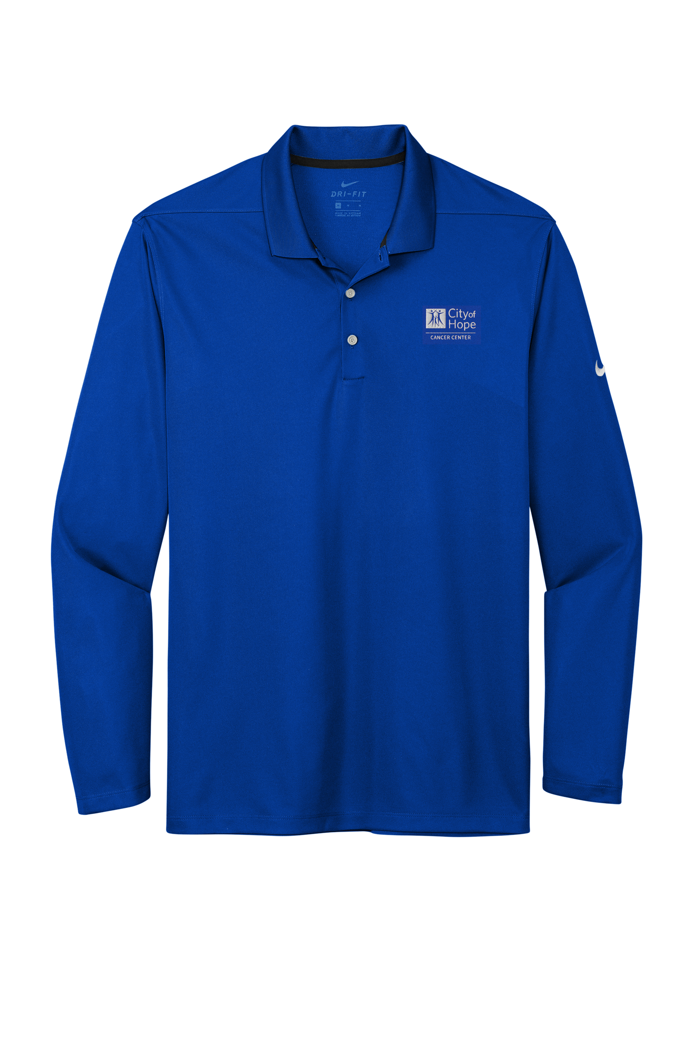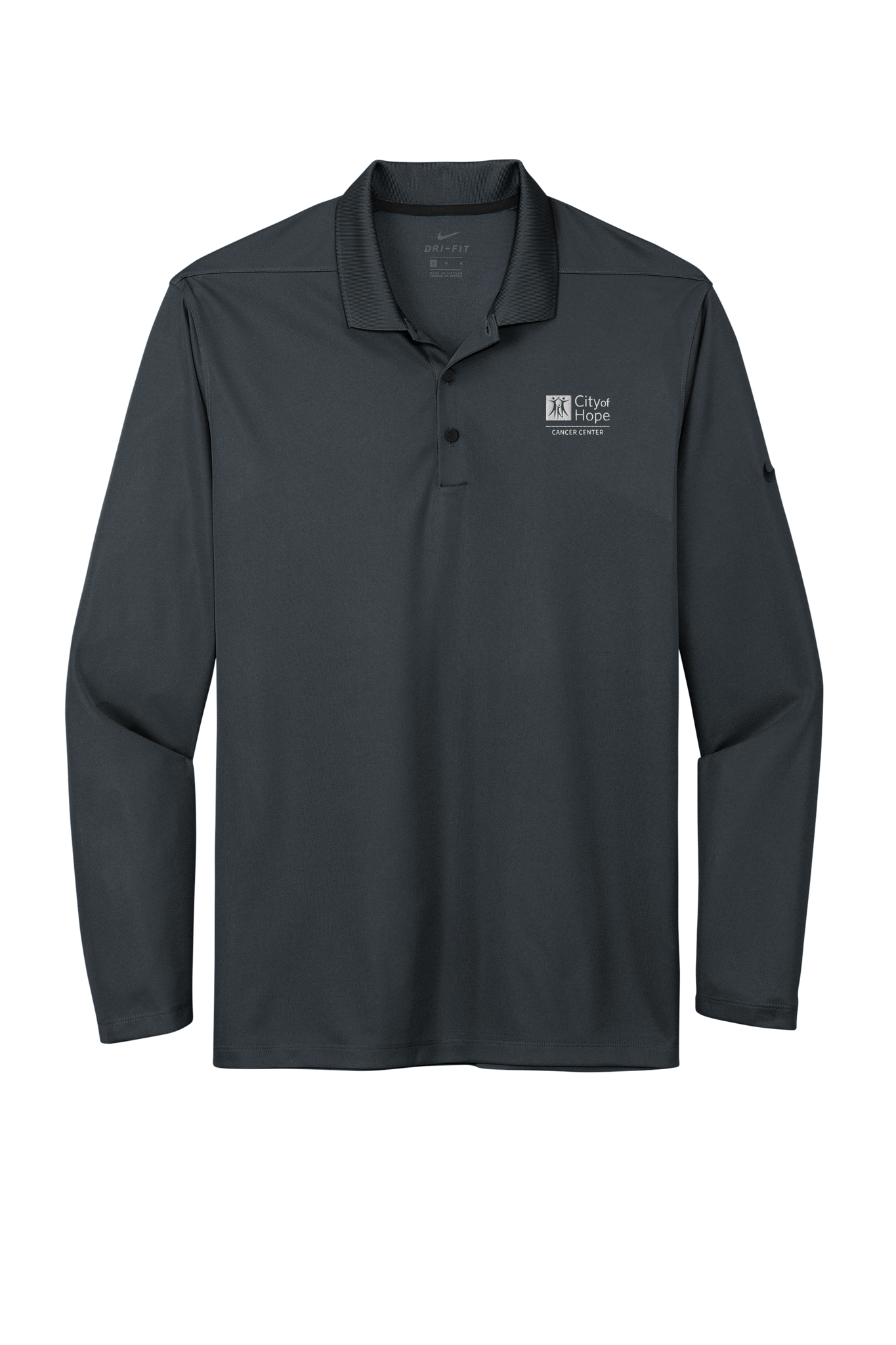 Elevate your wardrobe with the City of Hope branded Nike Dri-FIT Micro Pique 2.0 Polo. This long sleeve polo is the epitome of comfort and style, designed for those who appreciate the finer details in their attire. Crafted from soft, stretchable micro pique fabric, this polo is not just a piece of clothing; it’s a statement of support for a noble cause.