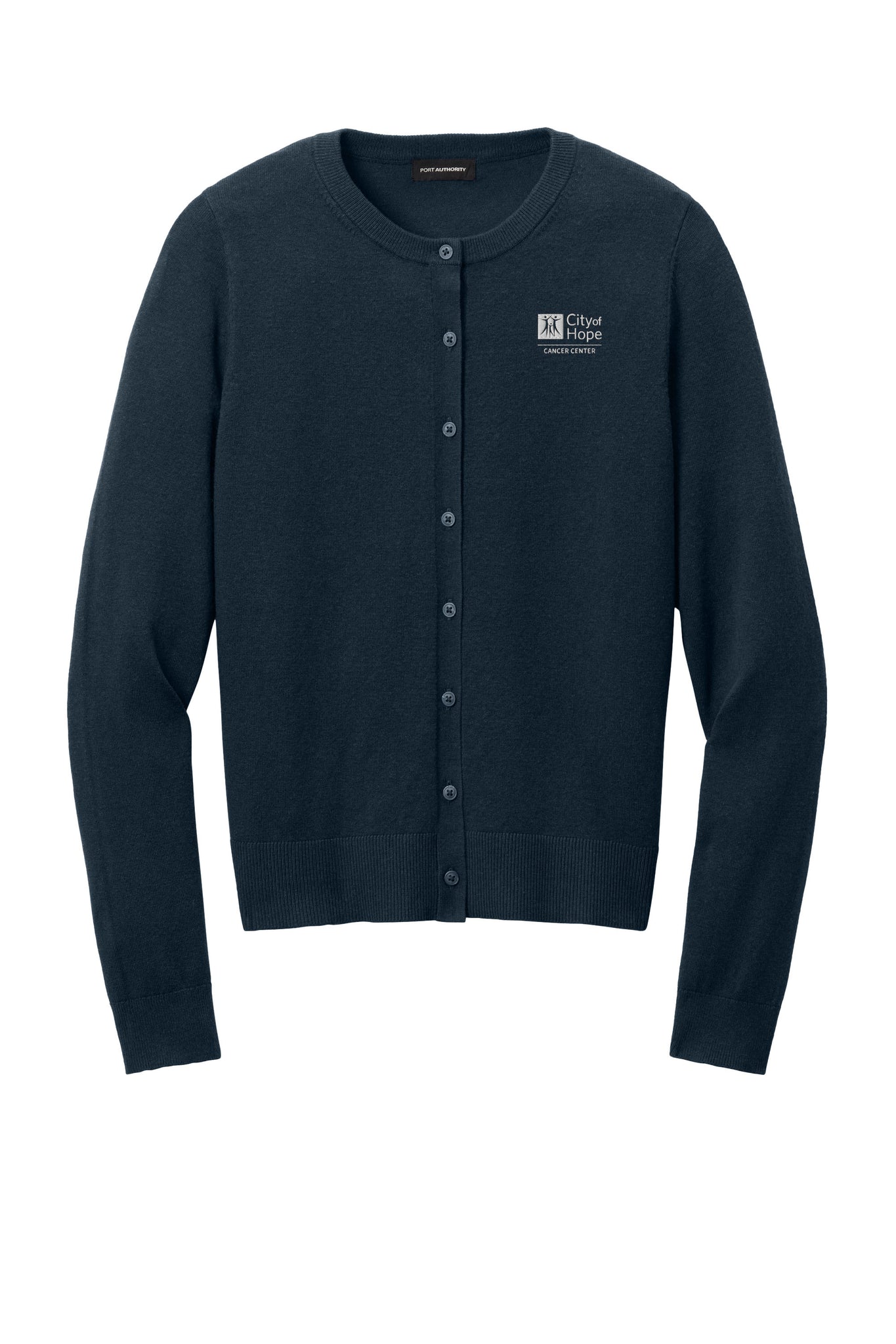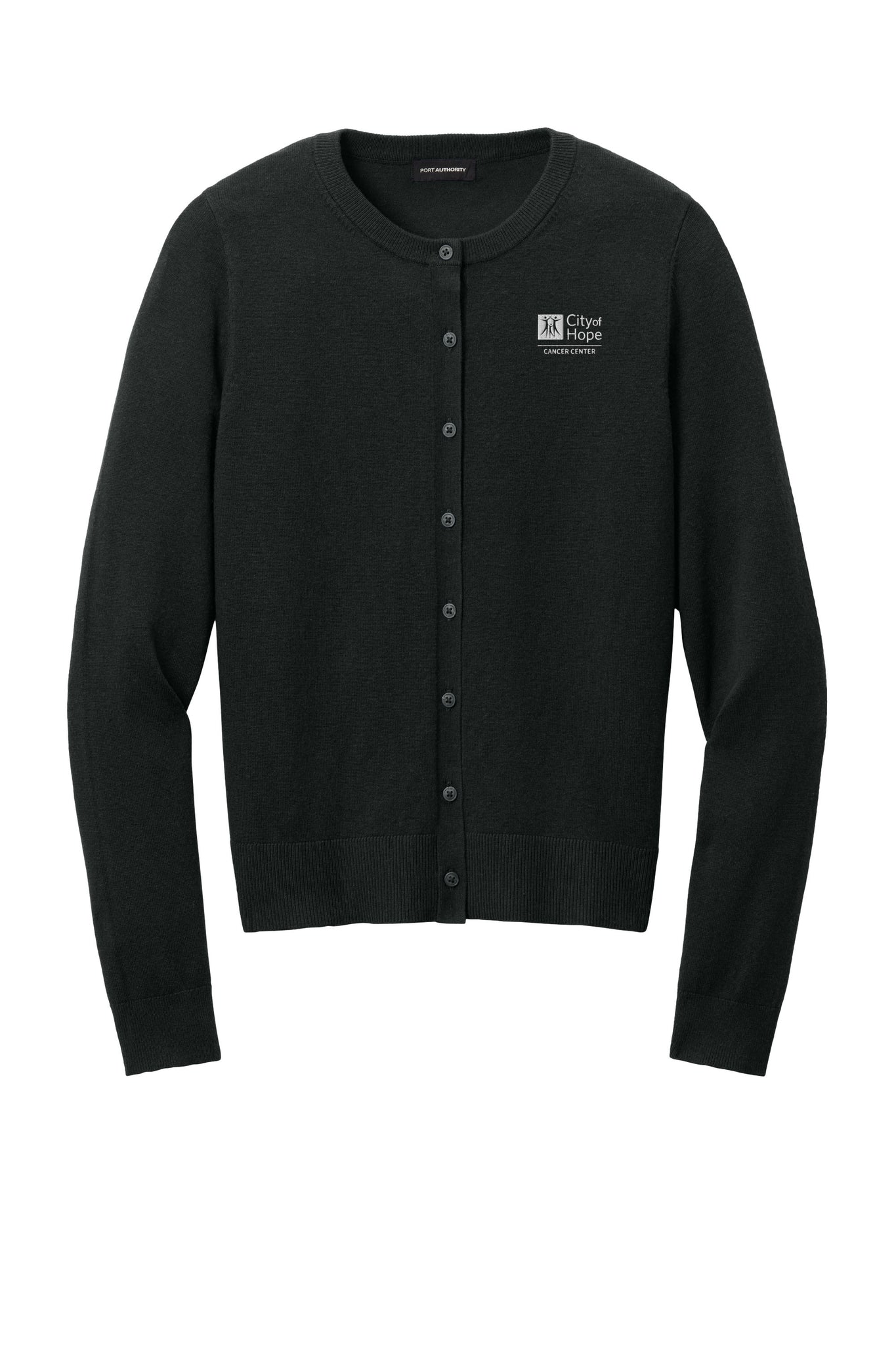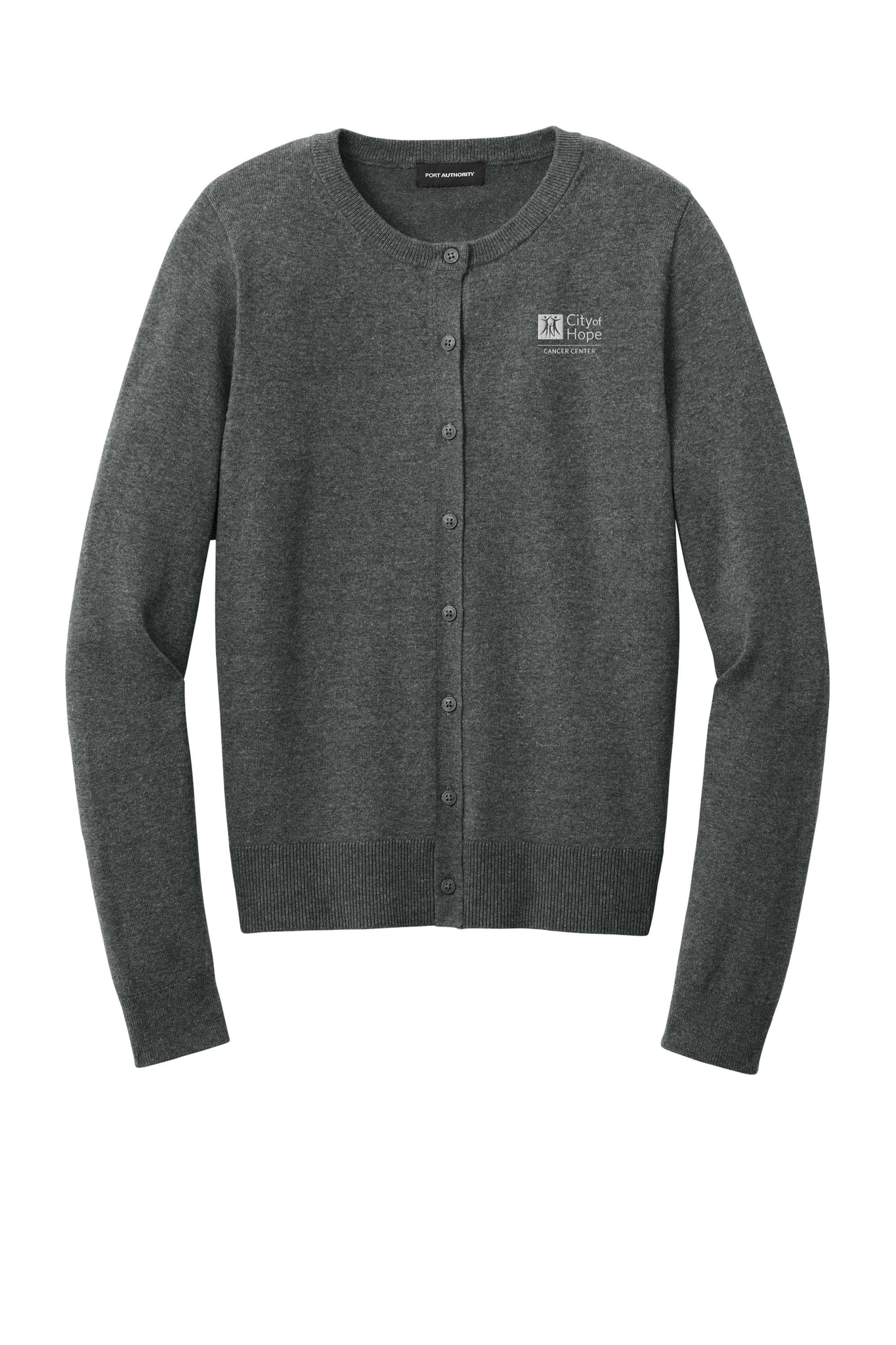Designed for versatility, this sweater features dyed-to-match faux horn buttons for a refined touch and a hip-length cut that pairs effortlessly with any outfit. Easy to care for and machine washable, it’s a stylish and practical addition to your wardrobe—perfect for layering or wearing on its own while representing City of Hope with pride.