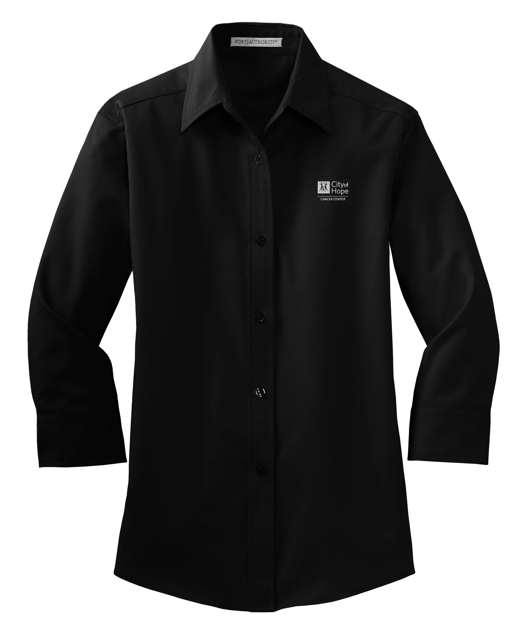 Featuring a relaxed fit with a traditional open collar, this versatile shirt offers a classic yet comfortable look that transitions seamlessly from office to after-hours. Dyed-to-match buttons and adjustable cuffs provide a refined finish, while the 3/4 sleeves add a stylish, modern touch. Whether you’re in meetings, on the go, or representing City of Hope with pride, this easy-care shirt delivers professional appeal without the hassle.