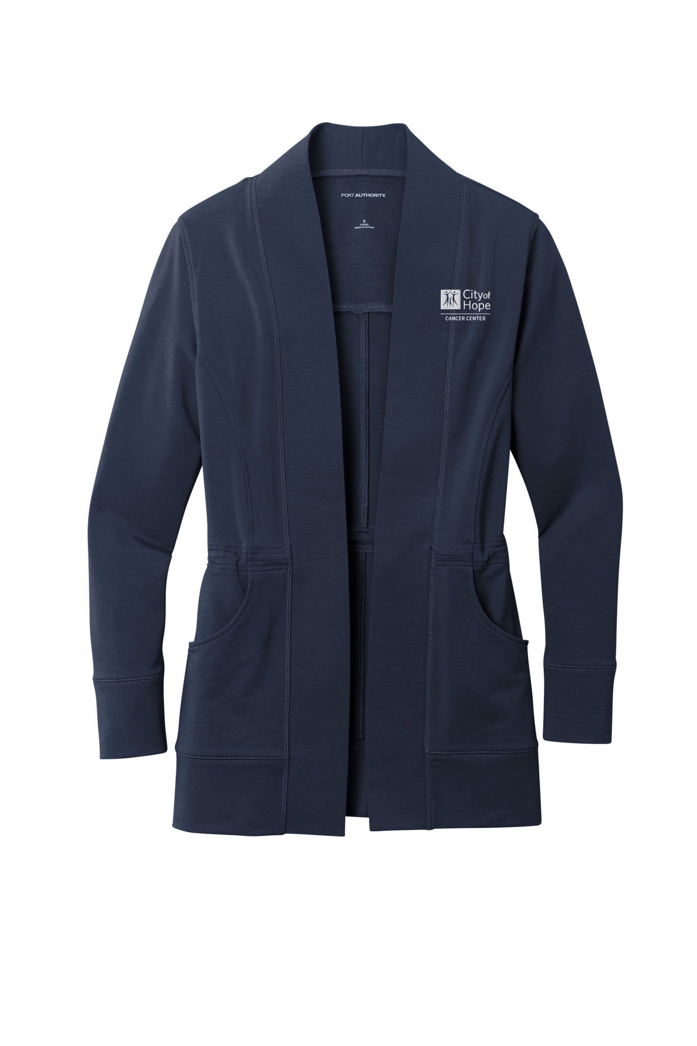 Wrap yourself in ultra-soft microterry comfort with this women’s open-front cardigan, thoughtfully finished with the City of Hope logo embroidered at the chest. Snag-resistant and tag-free for easy wear, it features an interior drawcord with toggles to shape the waist, handy front pockets, and flattering front-and-back seaming with a curved back yoke. Self-finished cuffs and hem give it a clean, polished look—perfect for layering at work, events, or everyday.